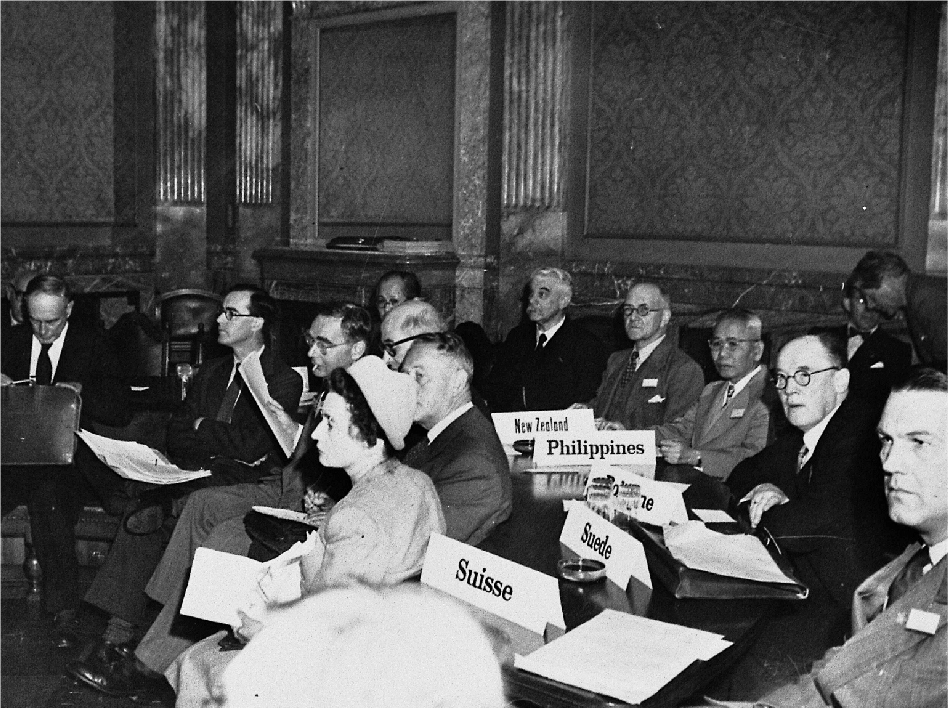 ▲ ユネスコ総会に出席する仁科博士(1949年9月20日パリ)